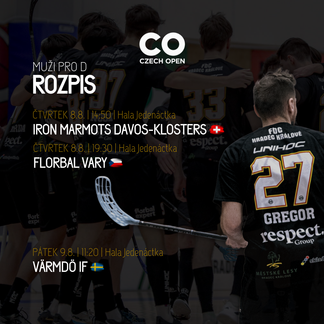 Muži se již zítra představí na mezinárodním turnaji Czech Open v Praze! Bojovat budou v kategorii PRO ve skupině D, kde se potkají se superligovým týmem z Karlových Varů, švédským celkem Värmdö IF a švýcarským týmem Iron Marmots Davos-Klosters.💪🏻