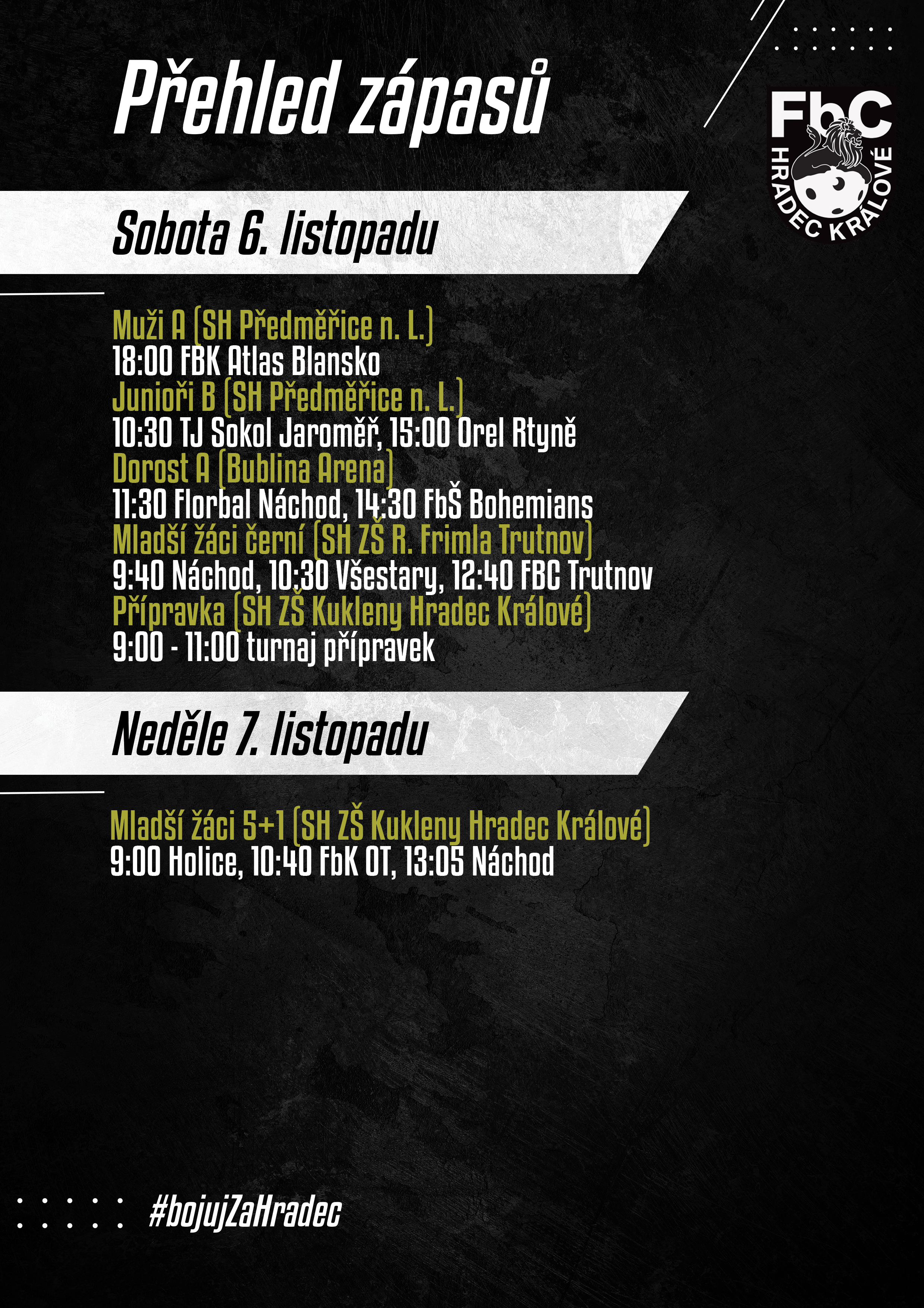 V sobotu budou hrát také mladší žáci černí v Trutnově a přípravka v Kuklenách.