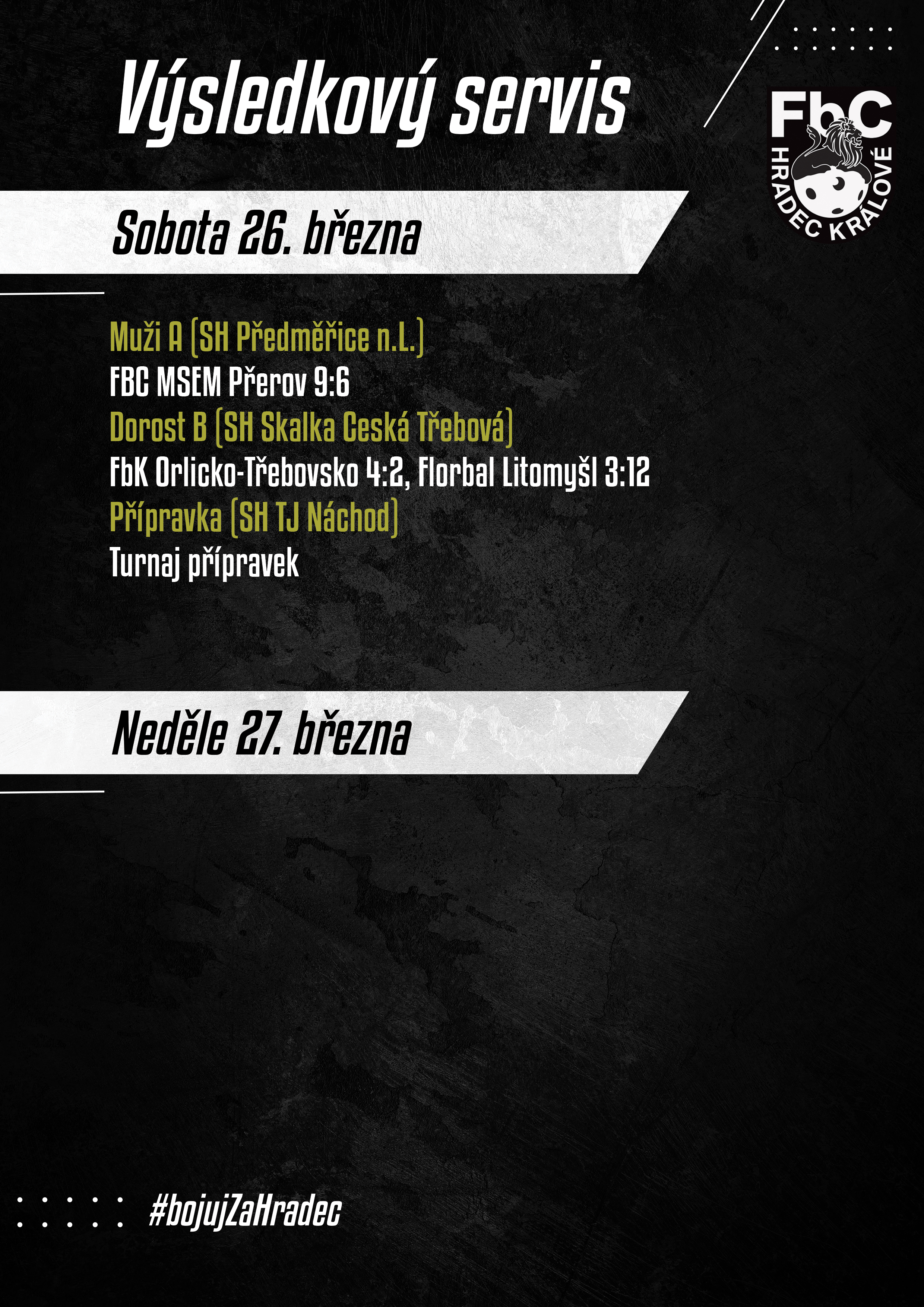 Výsledkový servis z uplynulého víkendu