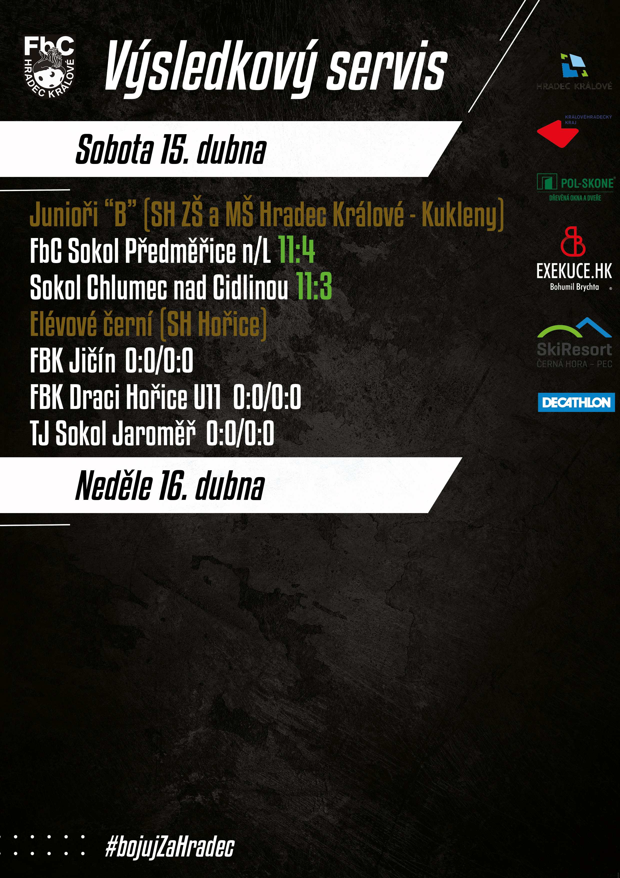 VÝSLEDKOVÝ SERVIS Z UPLYNULÉHO VÍKENDU