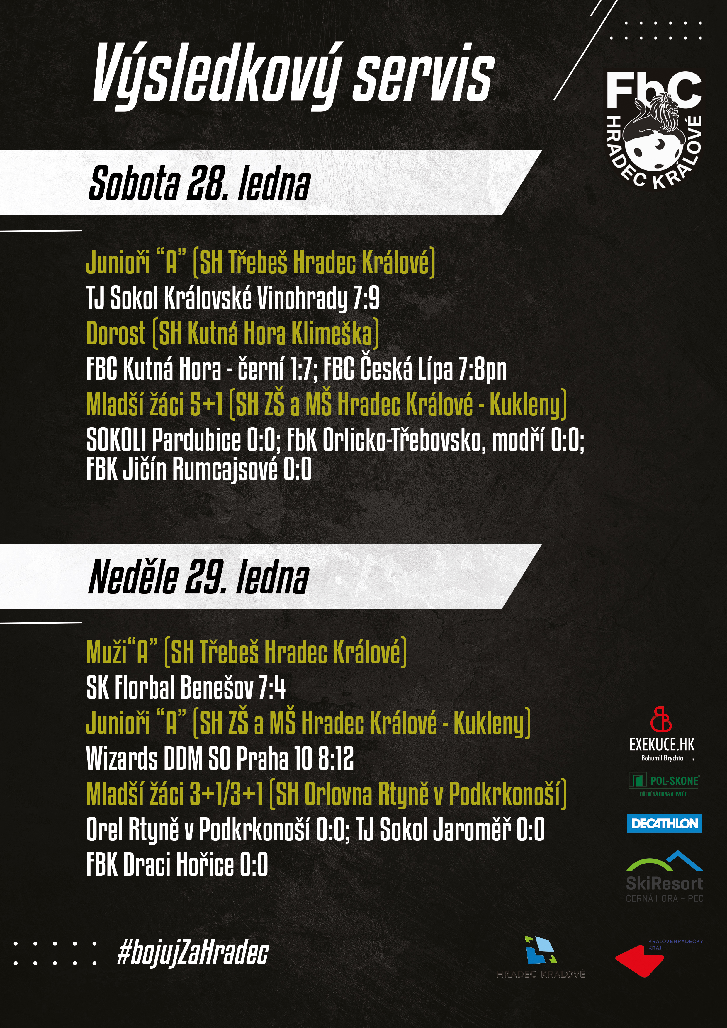 VÝSLEDKOVÝ SERVIS Z UPLYNULÉHO VÍKENDU