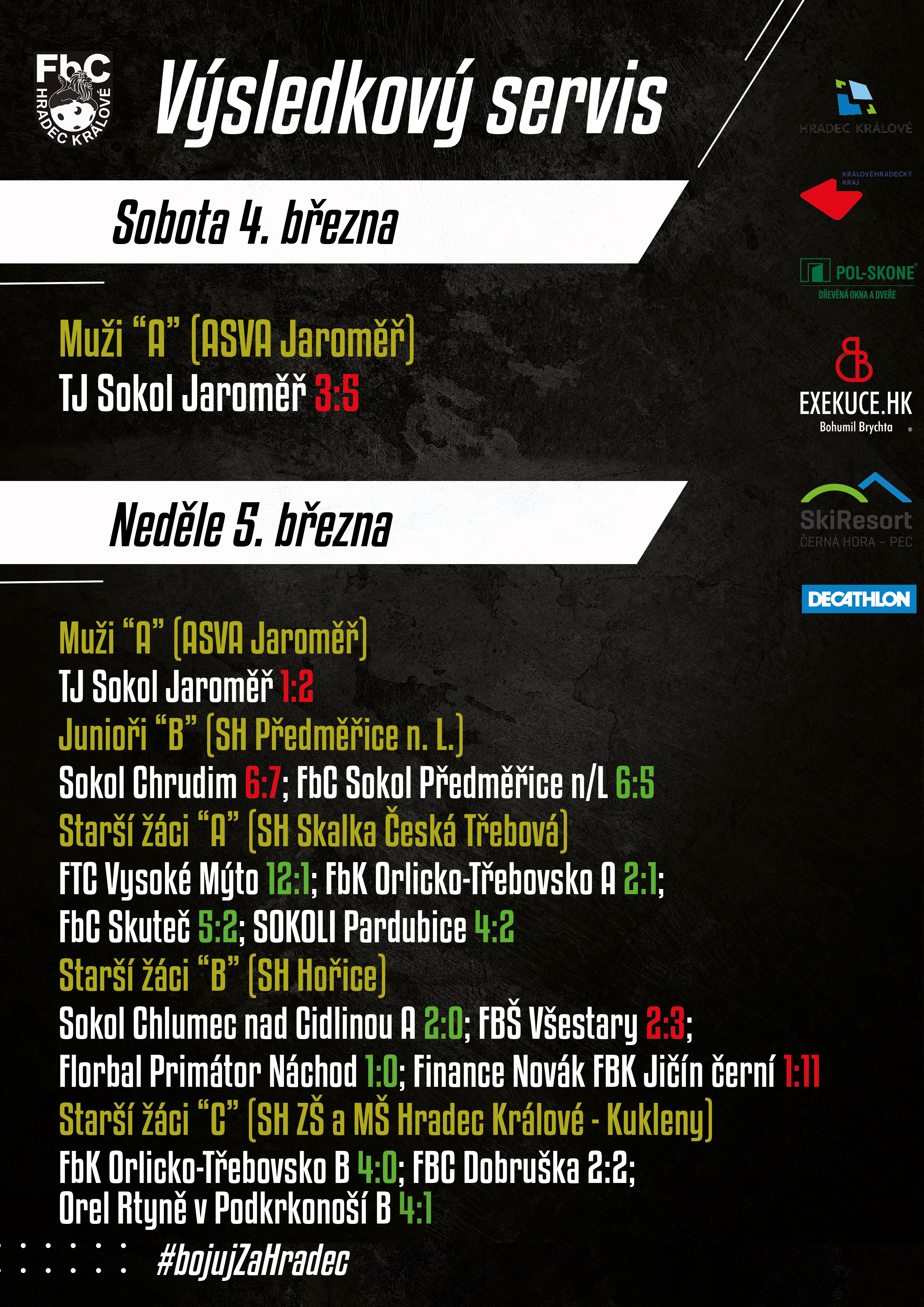 VÝSLEDKOVÝ SERVIS Z UPLYNULÉHO VÍKENDU
