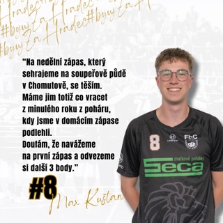 "Na nedělní zápas, který sehrajeme na soupeřově půdě v Chomutově, se těším. Máme jim totiž co vracet z minulého roku z poháru, kdy jsme v domácím zápase podlehli. Doufám, že navážeme na první zápas a odvezeme si další 3 body.”