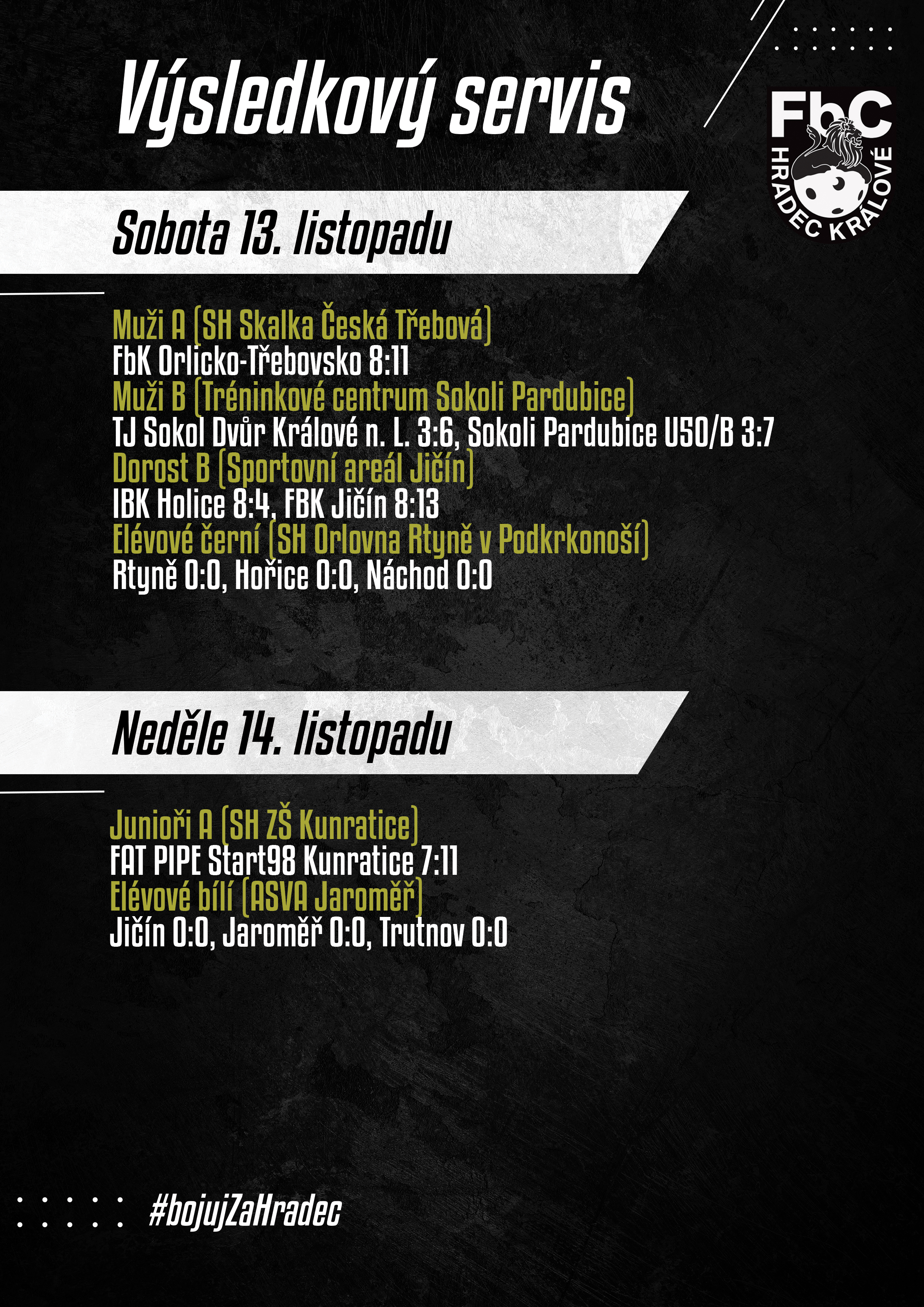 Výsledkový servis z uplynulého víkendu