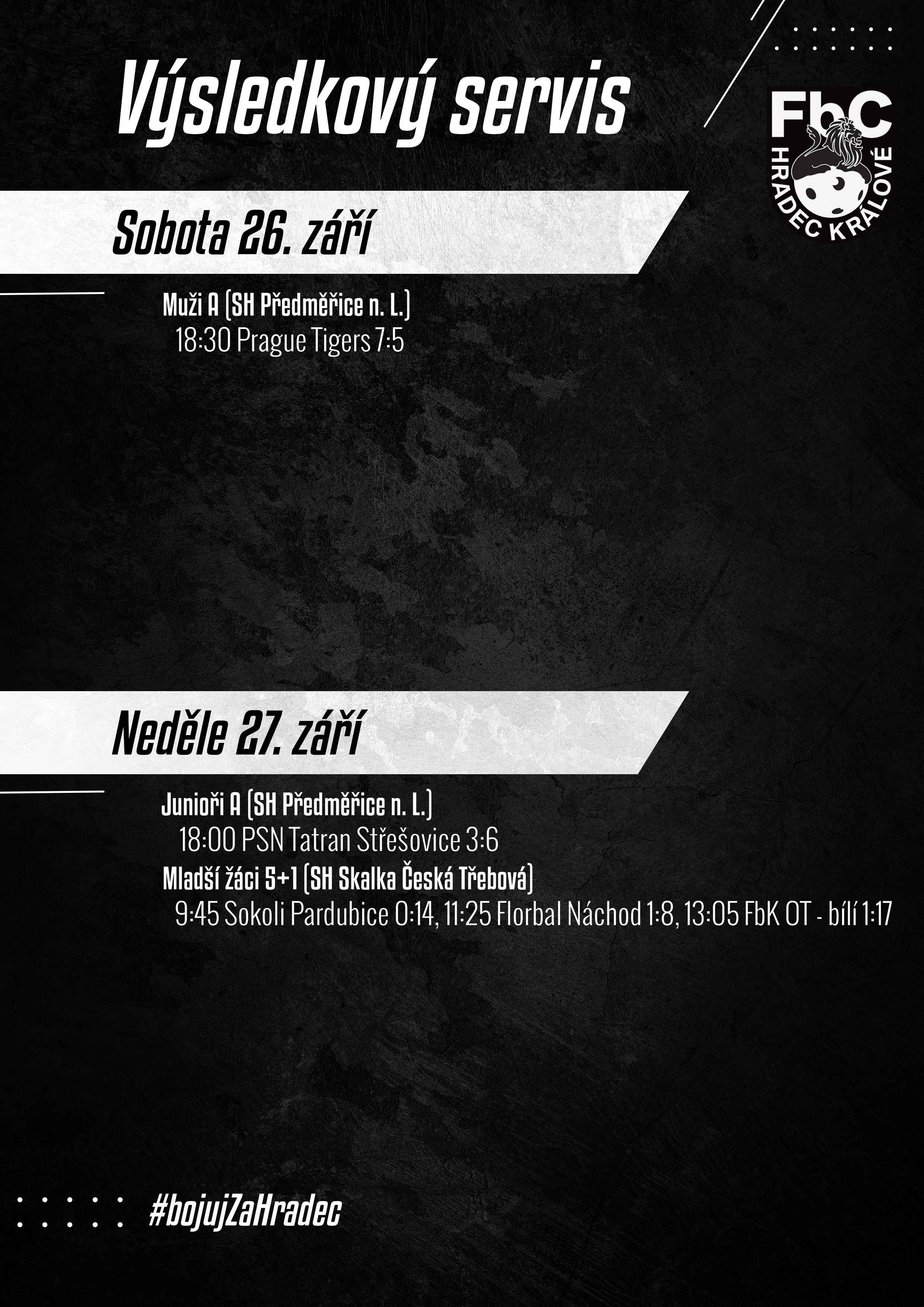 Výsledkový servis - 26.9. a 27.9.